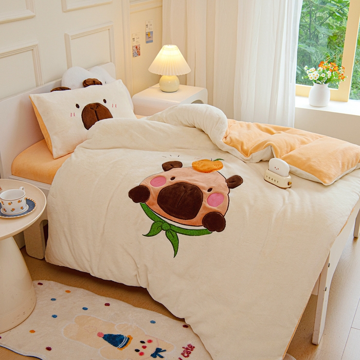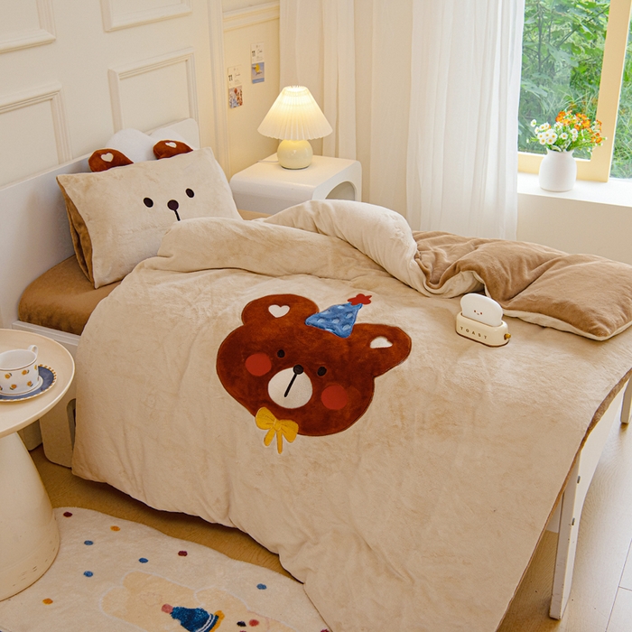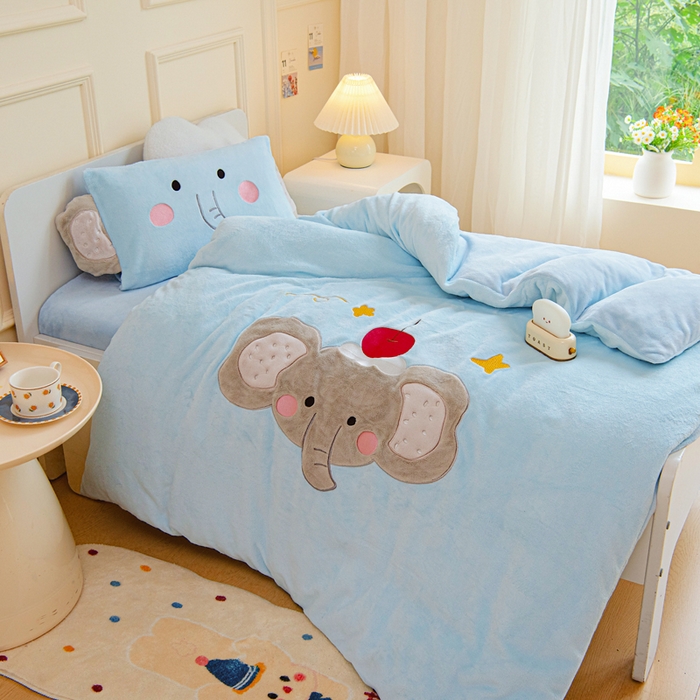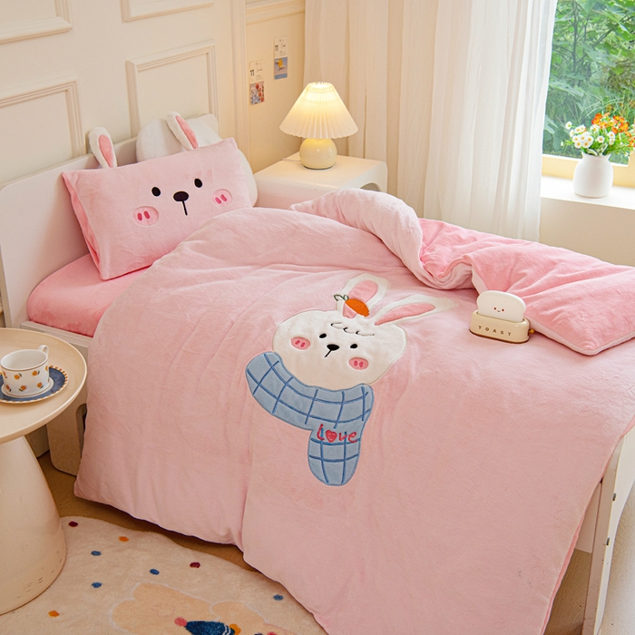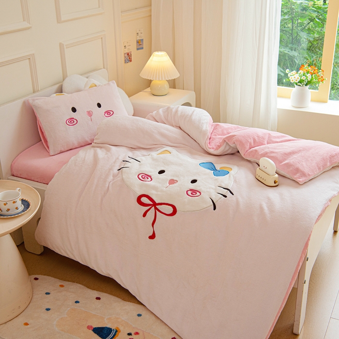 当前位置: 御棉坊> 产品中心 > 2025新款230g牛奶绒绣花卡通三件套多件套